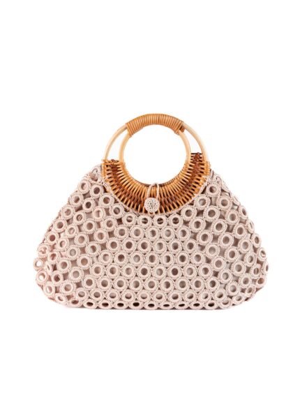 BOLSOS DE DISEGNO MEDIANAS: Borsa secchiello in cotone, interamente realizzata a mano, con pon pon e nappe, con manico intrecciato. 6 varianti colore, 23×16 cm.