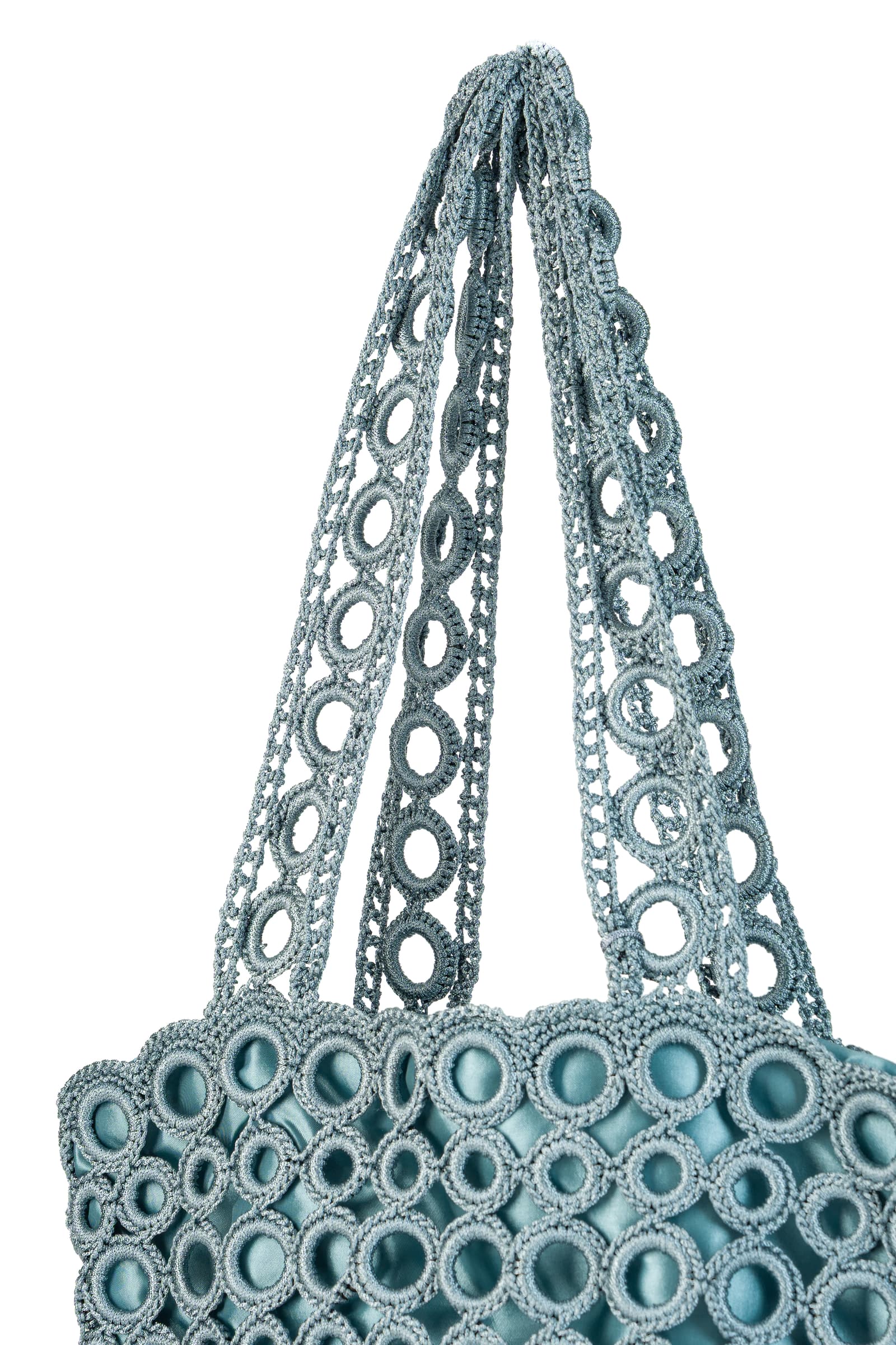 The Fringe Ring Bag is a crocheted ring bag with a mesh weave and long fringes. Its unique design adds movement and an unmistakable boho-chic touch to every step.